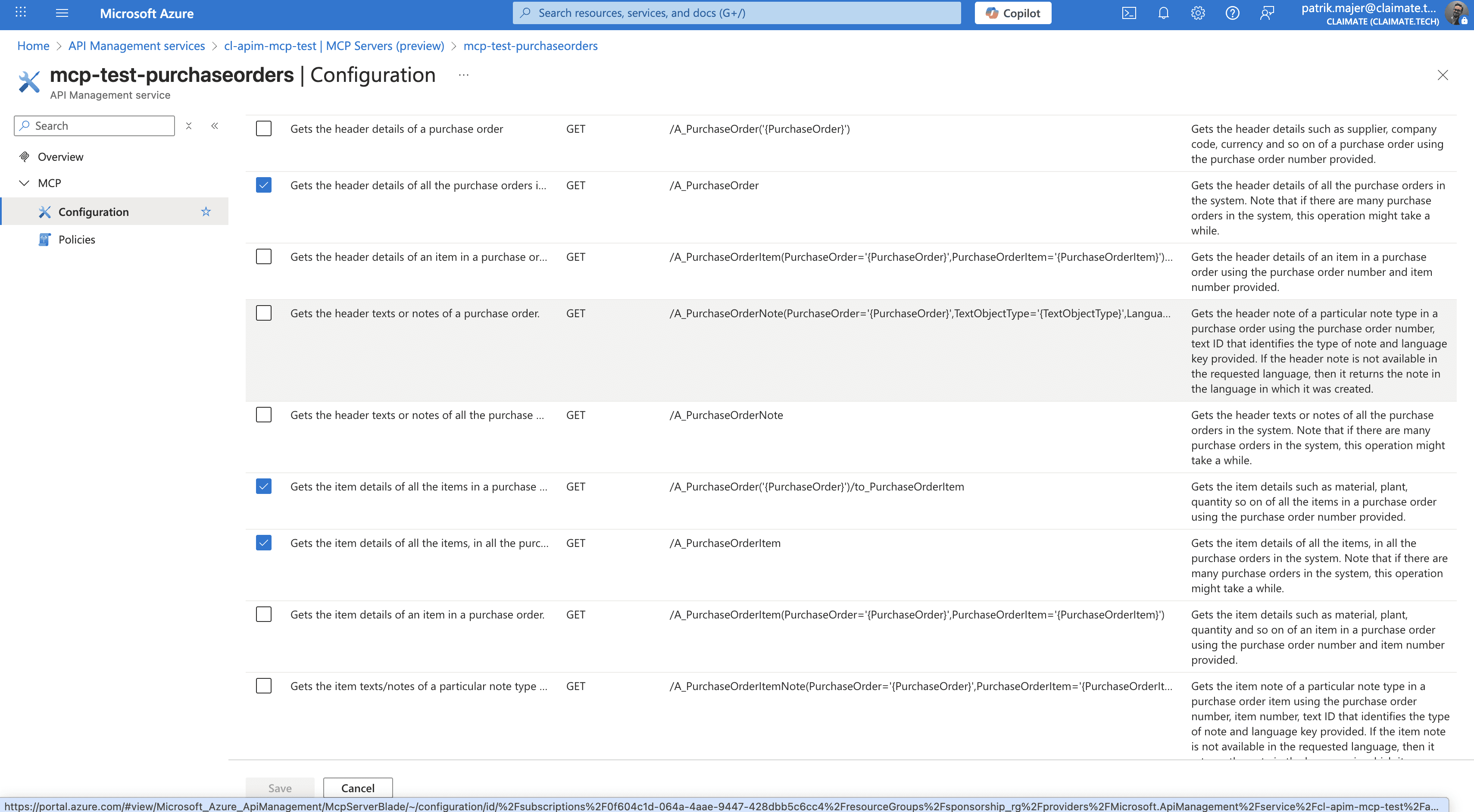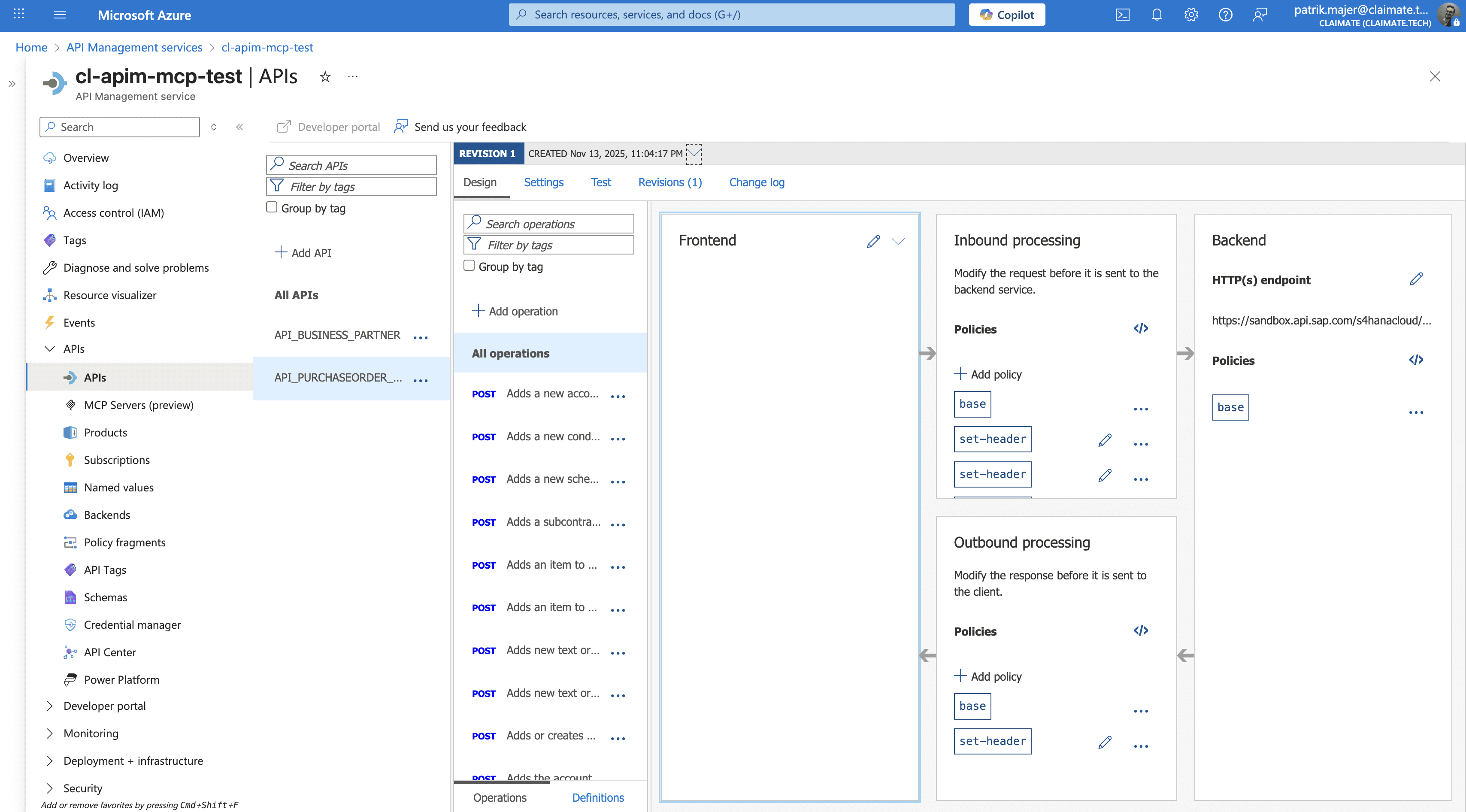 Since APIM already injects the SAP API key, the MCP code stays clean and credential-free.
